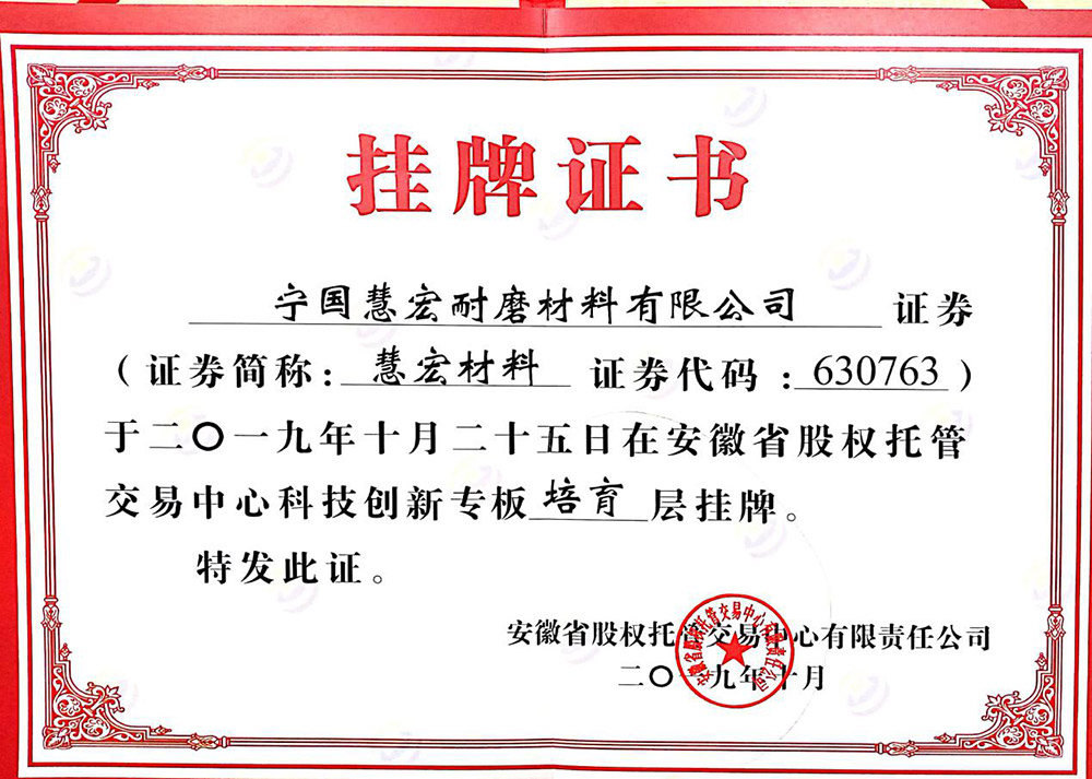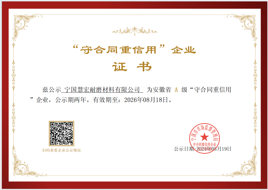 可靠的設備,才能長久穩(wěn)定運行全面推行ISO9001;2000版質(zhì)量管理體系標準,秉承“科學管理、精心制造、優(yōu)質(zhì)服務、追求卓越”的質(zhì)量方針,不斷打造高端耐磨材料產(chǎn)品。